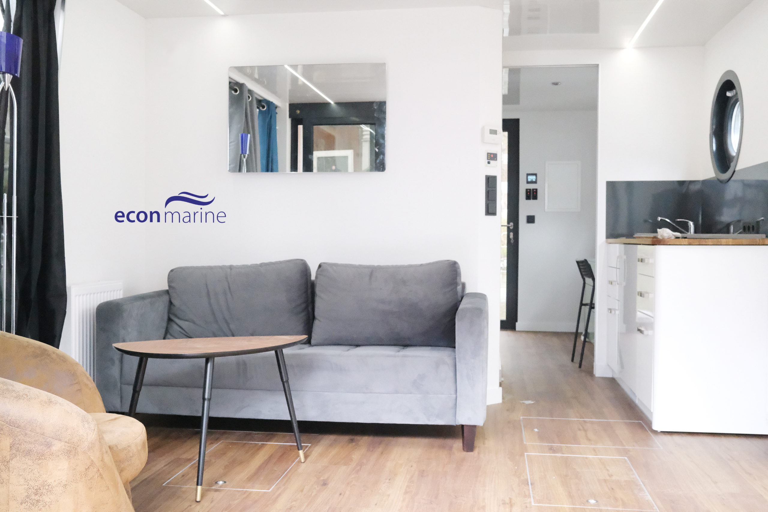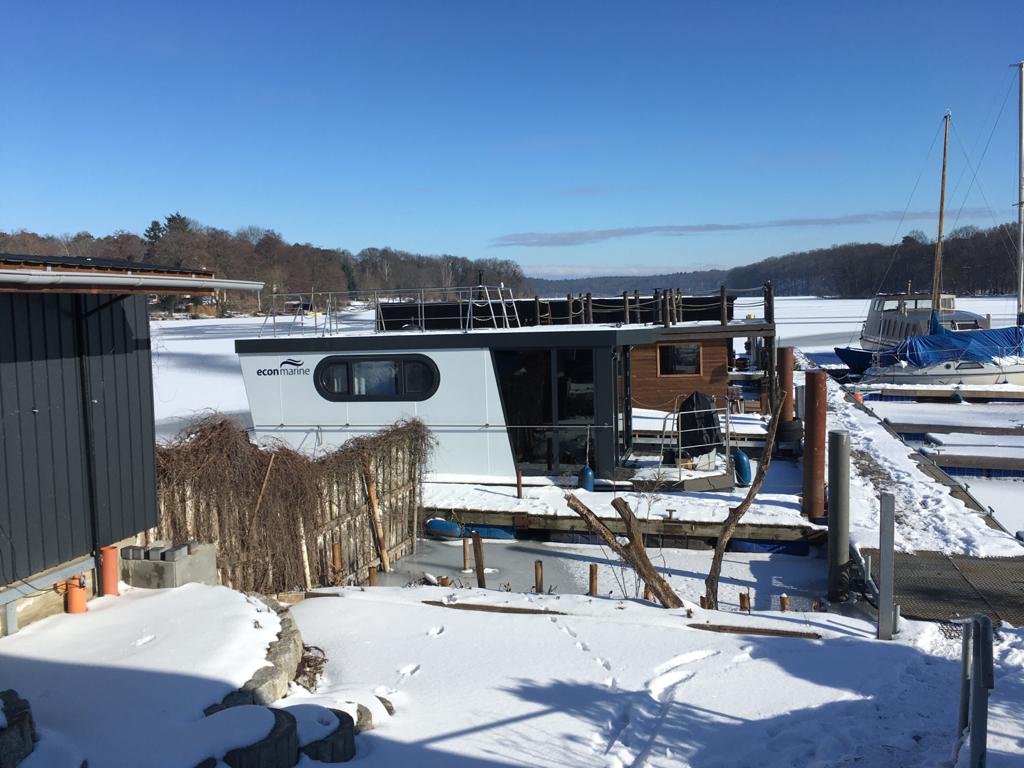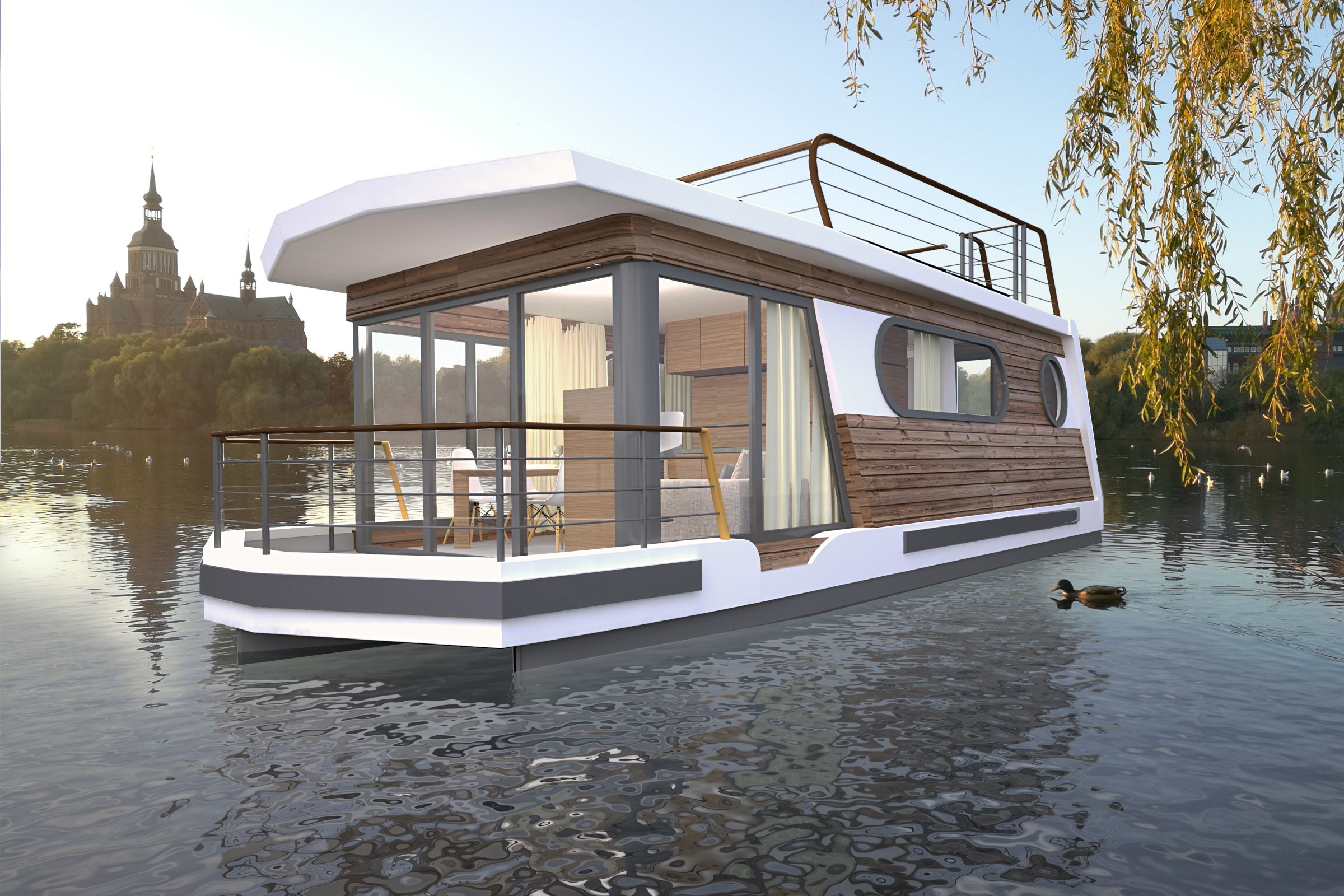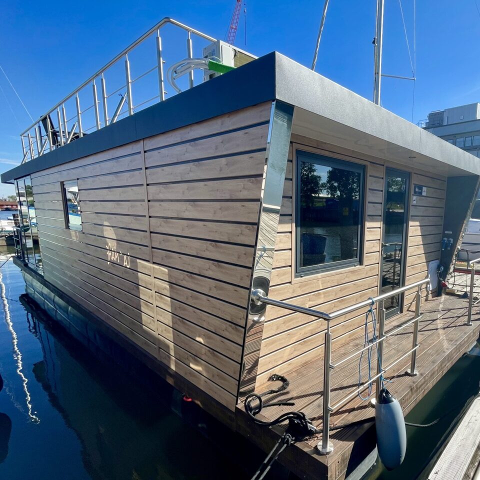 Wnętrze o powierzchni około 30 metrów kwadratowych obejmuje salon z kuchnią, sypialnię i przestronną łazienkę. Oprócz tarasu na dziobie, istnieje również możliwość wykorzystania tarasu dachowego, aby spędzić wieczór przy grillu lub poopalać się. Całe wnętrze wykonane jest w technologii CTS/konstrukcji drewnianej z najnowocześniejszą izolacją termiczną.