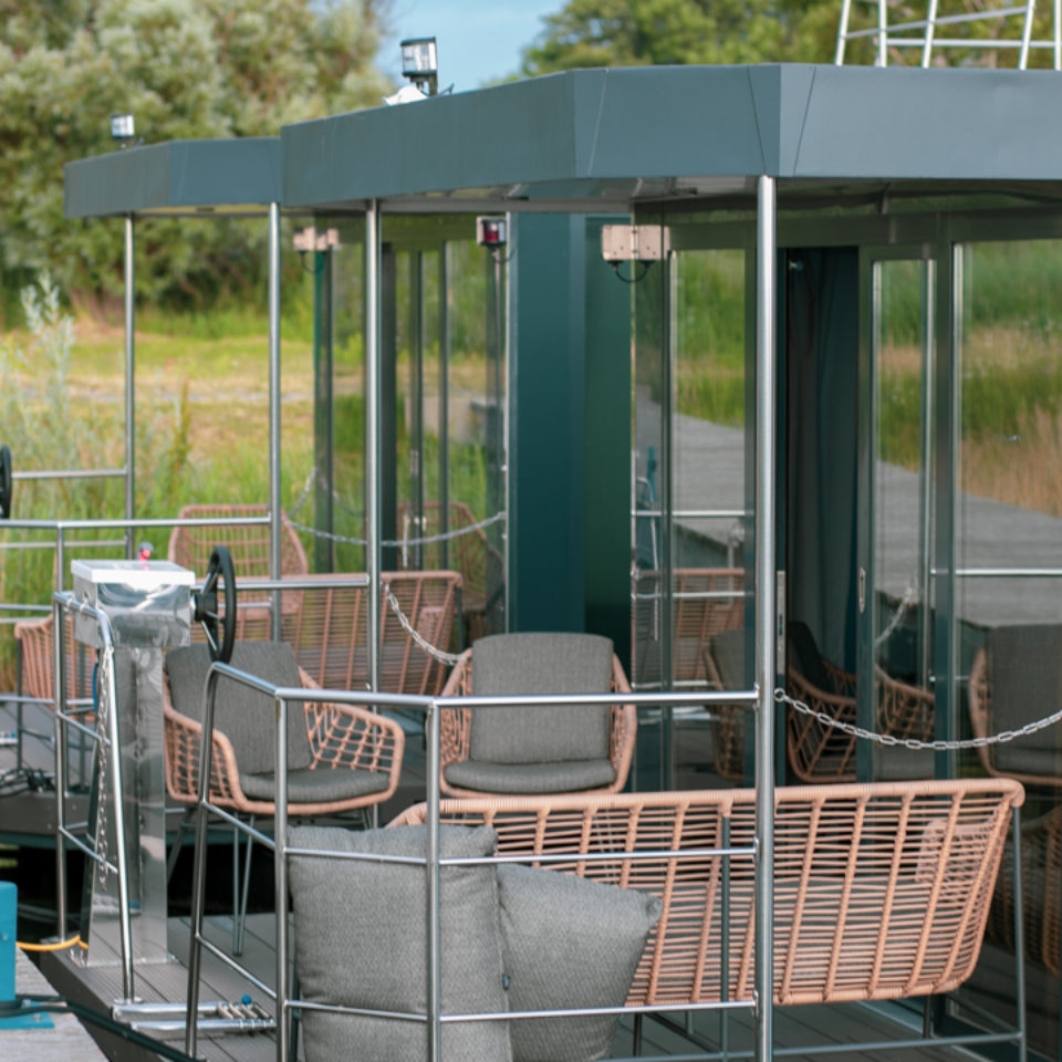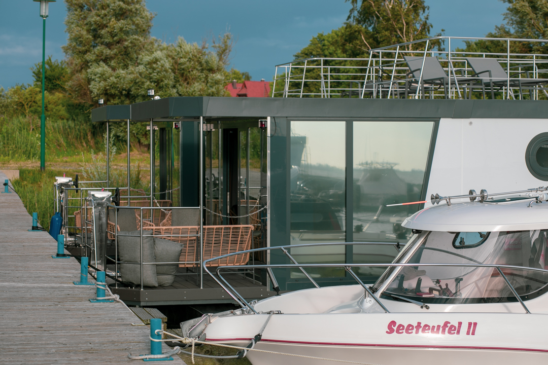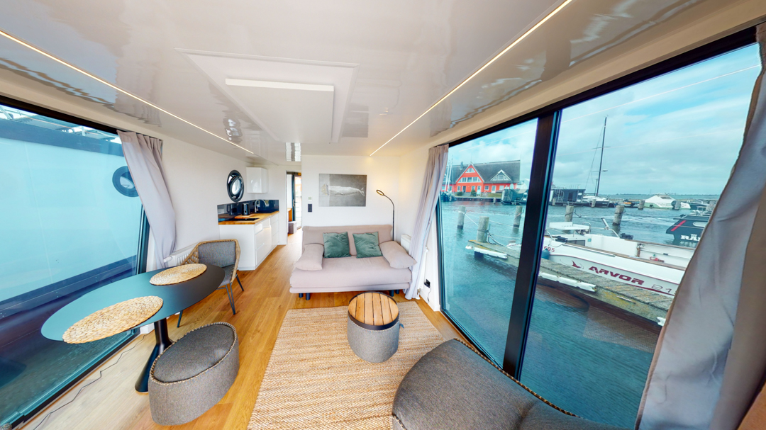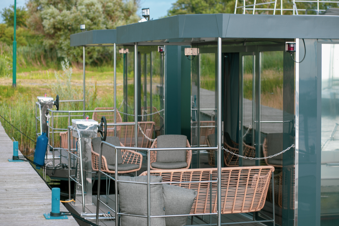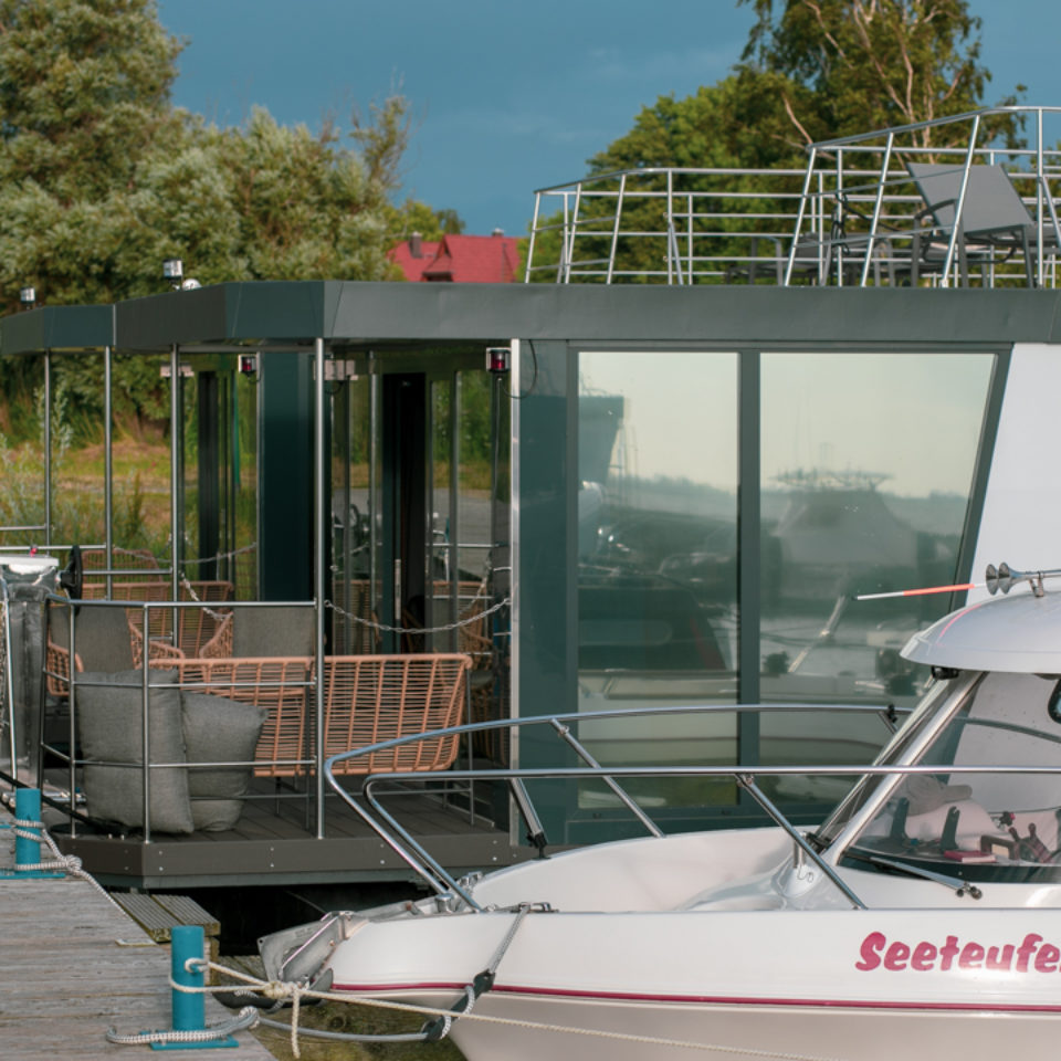 Houseboat Lagoon: Prezentujemy nowoczesną i elegancką wersję z przestronnym wnętrzem. Dom na wodzie o powierzchni użytkowej około 50 metrów kwadratowych i indywidualnym wystroju wnętrza pozwolą Ci zamienić go w luksusowy apartament.