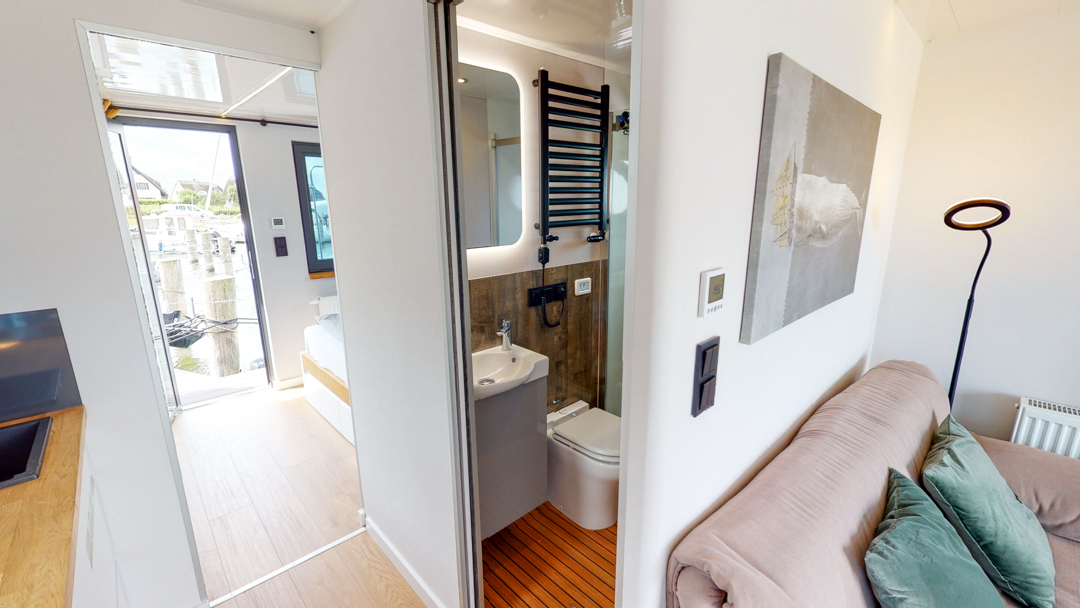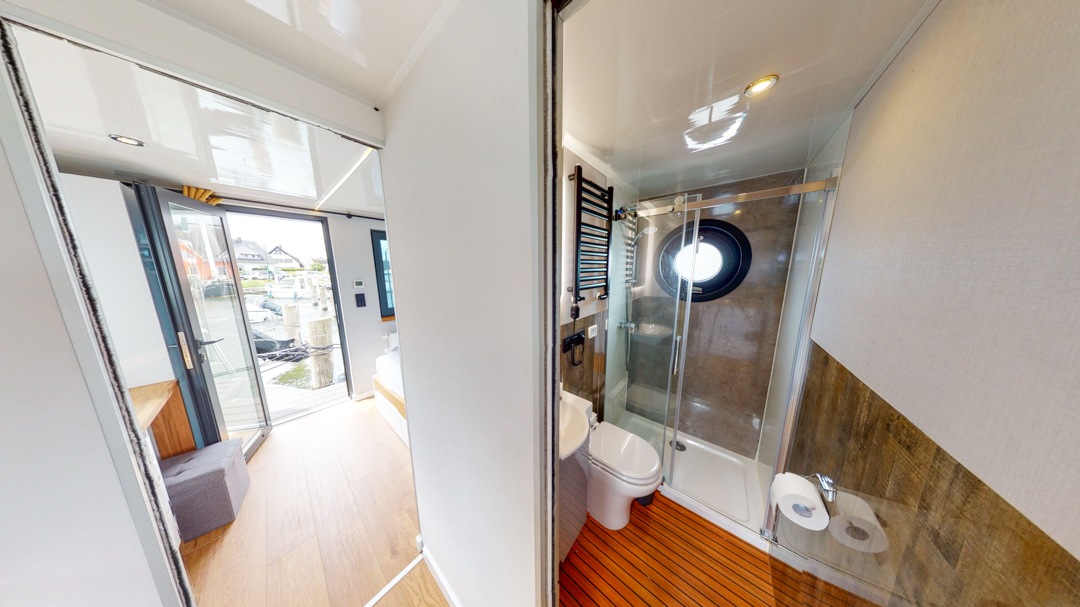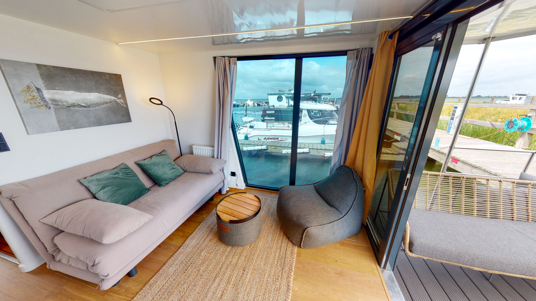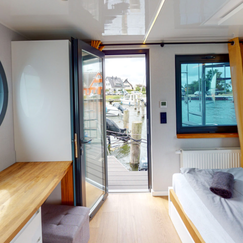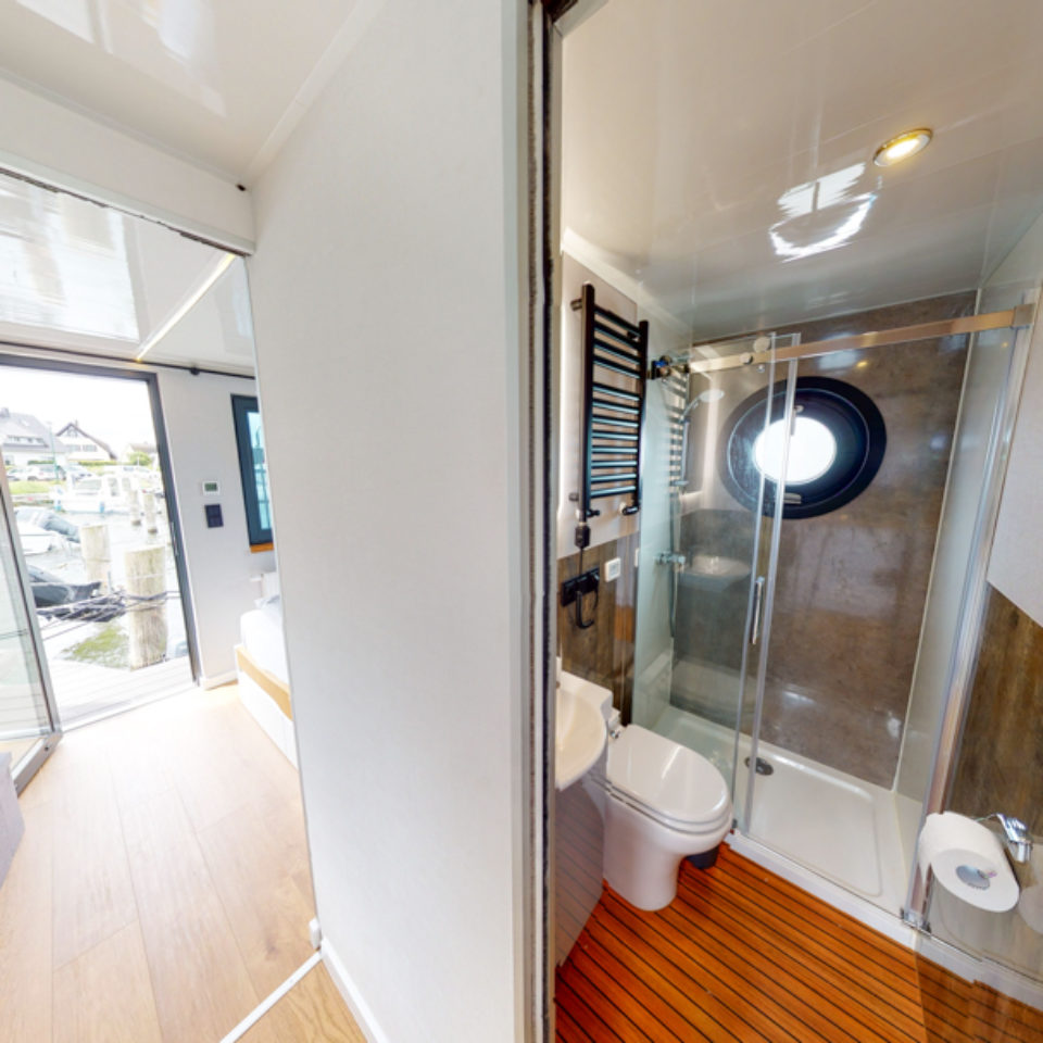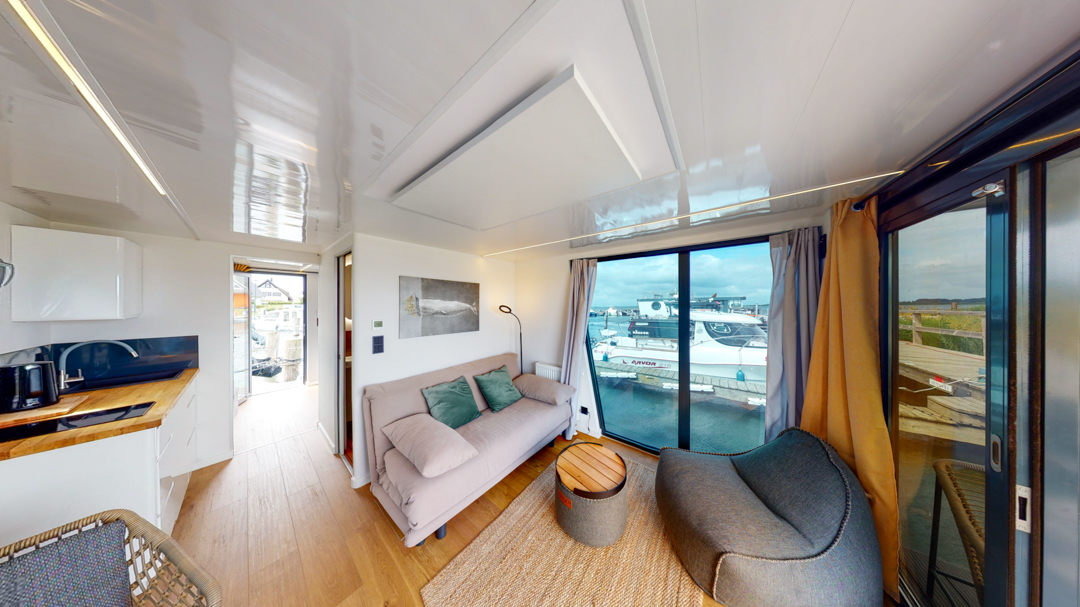 Przedstawiamy łódź mieszkalną RiverLoft 1000 – nowoczesną i elegancką, która wpasuje się w każde morskie otoczenie. Ten dwupokojowy pływający apartament oferuje idealne połączenie życia na wodzie i relaksujących wycieczek. Salon z aneksem kuchennym pozwala poczuć się jak w domu, bez względu na pogodę. Oczywiście, łazienka i część sypialna zapewniają komfort znany z domków na wodzie Econ Marine.