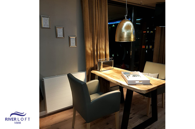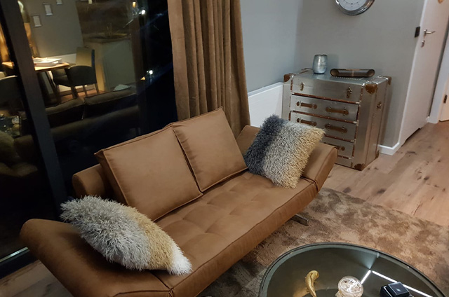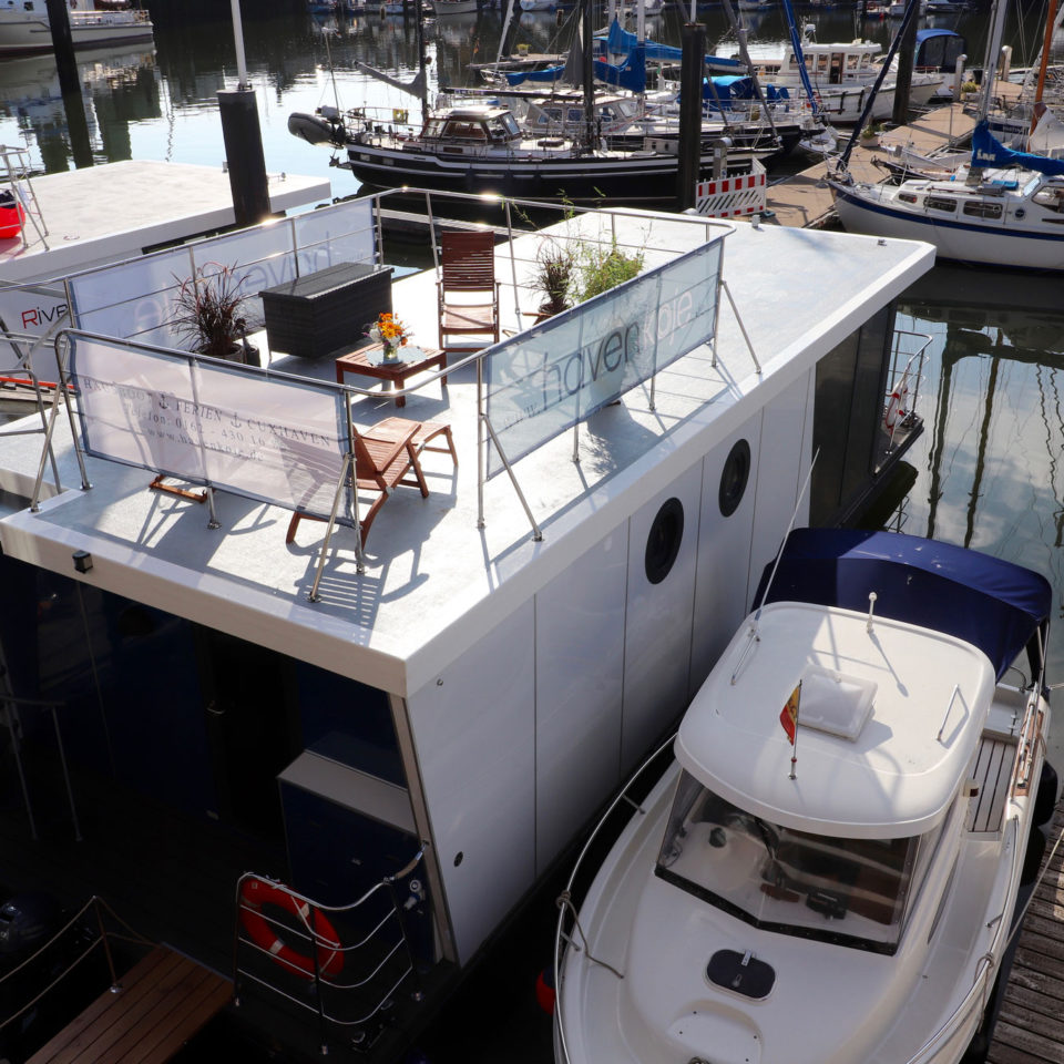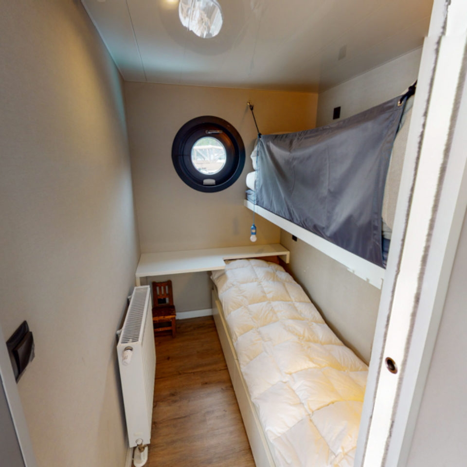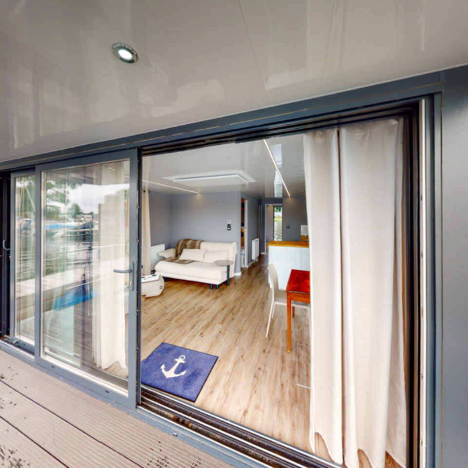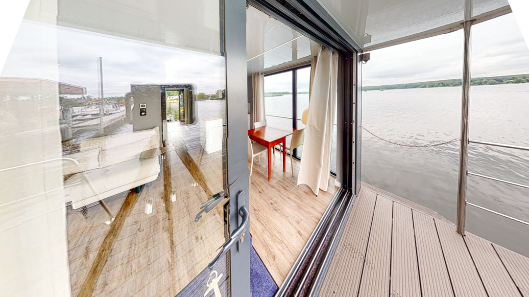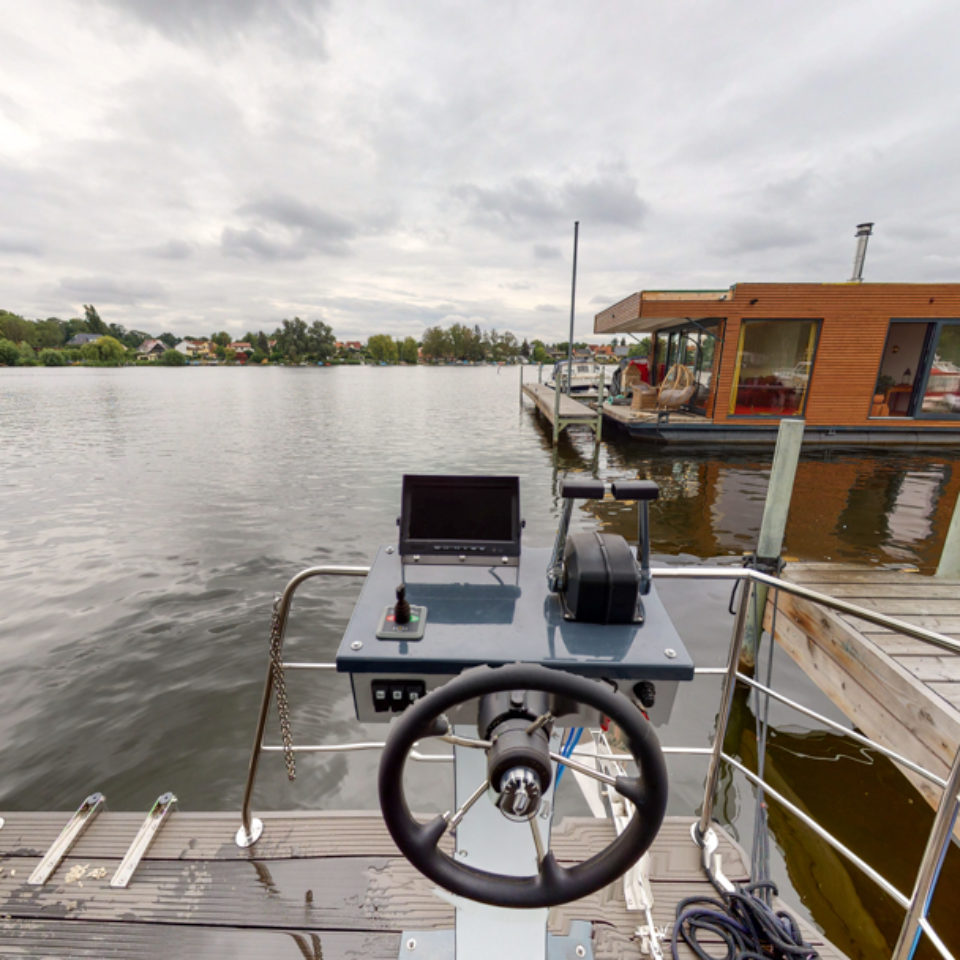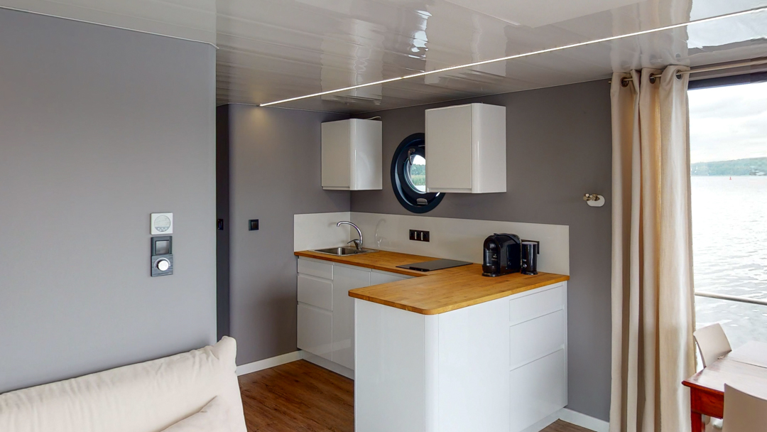 Adaptacja wnętrza domu na wodzie (powierzchnia netto ok. 30 m²) z salonem, sypialnią i pokojem dziecięcym jest zawsze projektem indywidualnym, który jest umeblowany i wyposażony według życzeń klienta. Proponujemy projekty wnętrz.
